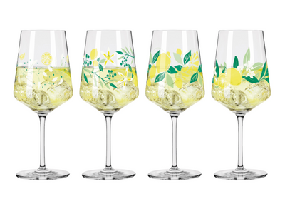Genießen Sie die Essenz des Sommers mit dem RITZENHOFF Sommertau Limoncello 4er Set, entworfen von den talentierten Designerinnen Sonja Eikler, Esther Sprenger-Pieper und Ana Vasconcelos. Dieses Aperitifglas-Set bringt südliches Flair direkt zu Ihnen nach Hause. Ideal für Spritz-Getränke, Cocktails, Aperitifs, Wein oder Saft, verschönert durch frische, elegante Zitronenmotive. Die Gläser sind in Deutschland gefertigt und zeichnen sich durch Ritzenhoff Markenqualität aus. Mit organischen Farben dekoriert, sind sie nicht nur energiesparend bei niedrigen Temperaturen gebrannt, sondern auch spülmaschinenfest. Ein attraktives 4er-Set, das jedem Anlass einen spritzigen Akzent verleiht.