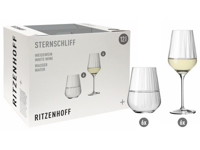 Das RITZENHOFF Sternschliff Weißwein- und Wasserglas-Set H22 #1 besticht durch seine elegante Schlichtheit und hochwertige Verarbeitung. Dieses stilvolle Set umfasst sechs Weißweingläser und sechs Wassergläser, perfekt für den anspruchsvollen Genießer. Die Gläser sind Teil einer Kollektion, die für ihre zeitlose Ästhetik und Funktionalität geschätzt wird. Jedes Glas ist kunstvoll gestaltet und erzeugt durch seine feinen Relieflinien ein faszinierendes Spiel von Licht und Schatten. Geliefert wird das Set in einer ansprechenden 12er-Verpackung, ideal auch als Geschenk. RITZENHOFF steht für höchste Markenqualität, Made in Germany, und bietet weitere passende Gläser dieser exklusiven Kollektion an.