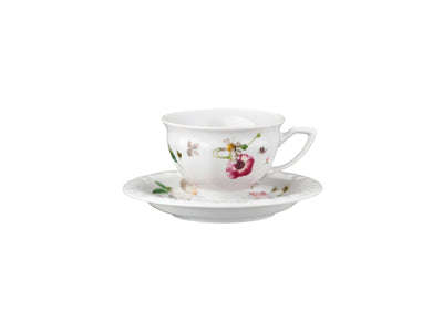 Ebenfalls von Regula Stüdli entworfen, besinnt sich Maria Pink Rose auf die englische Geschirrtradition: zarte Gartenrosen, Granatäpfel und liebliche Gänseblümchen vermitteln eine frühlingshafte, leichte Atmosphäre und zieren Ihre Tafel sowohl im Alltag als auch zu festlichen Anlässen....-