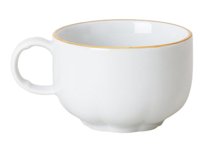 Gefertigt aus hochwertigem Porzellan, überzeugt die Obertasse durch ihre angenehme Haptik und exzellente Verarbeitung. Ihr ergonomischer Henkel sorgt für eine komfortable Handhabung, während die feine Goldveredelung dem Design eine exklusive Note verleiht.