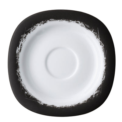Die schöne Untertasse mit dem tollen grauen rand passt perfekt zur Obertasse und bildet ein schönes Bild auf einem gedeckten Tisch.