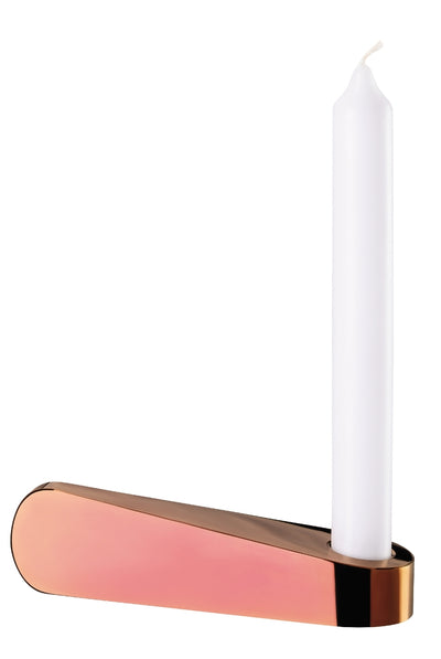 Durch seine titanisierte Glasoberfläche und die edle Farbgebung in Gold, Silber, Kupfer und Klarglas entsteht ein lebhaftes Spiel aus Licht und Schatten. Das elegante und geometrisch geformte Design der Kerzenhalter schafft Platz für eine Kerze auf der einen Seite und ein feines Endstück zum Halten auf der anderen Seite. Besonders effektvoll und verspielt lässt sich Swan Lights mit mehreren Leuchtern arrangieren.