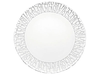 Servieren Sie Ihr Mittagessen auf dem weissen mit platinfarbenem Mosaikrand dekorierten Speiseteller mit einem Durchmesser von 28 cm.