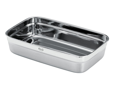 Die Rösle FLEXX 2GO Dose in eckiger Form mit 1,5 l Fassungsvermögen und einer Größe von 26x16,2cm überzeugt durch ihre hochwertige Verarbeitung aus Edelstahl 18/10 und ihre durchdachte Alltagstauglichkeit. Sie eignet sich perfekt für größere Portionen, Meal-Prep oder das Aufbewahren von Speiseresten. Die Dose ist spülmaschinengeeignet und lässt sich somit mühelos reinigen. Auch zum Erwärmen in der Mikrowelle ist sie geeignet (Deckel vorher entfernen). Die Kombination aus langlebigem Edelstahl und flexiblem Kunststoff macht diese Dose zu einem modernen, nachhaltigen Begleiter für Küche und Alltag.