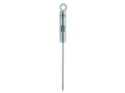 Mit digitaler, beleuchteter Temperaturanzeige, umschaltbar von Celsius auf Fahrenheit. Der Messbereich reicht von –40 °C bis +200 °C. Zum schnellen Messen von Temperaturen, z.B. beim Braten und Frittieren, zur Zubereitung von Kindernahrung und für Wein und Tee. Gesamtlänge 22,0 cm Maß Funktionsteil 12,0 cm...