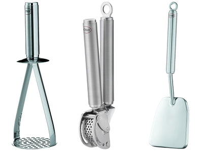 Der Kartoffelstampfer aus Edelstahl hat eine Länge von 26 cm . Kraftschonendes Arbeiten erhält man durch das Lochbild des zweiarmigen Stampfers. Der Handteller am Griff ermöglicht ein kräftiges Abdrücken beim Kartoffelstampfen. Die planebene runde Fläche lässt keine Reste am Stampfer hängen.