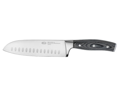 Ein hochwertiges Santokumesser ist die perfekte Wahl für vielseitige Schneidarbeiten in der Küche – und das RÖSLE WOLFGREY Santokumesser mit einer Klingenlänge von 17,5 cm überzeugt mit außergewöhnlicher Präzision, Ergonomie und Qualität. Die breite, leicht geschwungene Klinge ermöglicht mühelose, exakte Schnitte bei Fleisch, Fisch und Gemüse. Durch die besondere Klingengeometrie in Kombination mit dem Kullenschliff bleibt das Schnittgut weniger an der Klinge haften, was sauberes und effizientes Arbeiten erleichtert. Der ergonomisch geformte Griff in modernem Wolfgrey sorgt für eine sichere Handhabung und liegt angenehm in der Hand – ideal für alle, die Wert auf Kontrolle, Komfort und höchste Schneidleistung legen. Ein zuverlässiges Werkzeug für ambitionierte Hobbyköche und den täglichen Einsatz in der Küche.