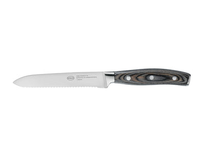 Ein gutes Universalmesser ist ein unverzichtbares Werkzeug in der Küche – und das RÖSLE WOLFGREY Universalmesser mit einer Klingenlänge von 13 cm überzeugt durch höchste Präzision, Ergonomie und Qualität. Die mittelgroße, fein gezahnte Klinge eignet sich hervorragend zum Schneiden von Tomaten, Wurst, Käse oder Brötchen. Sie gleitet mühelos durch weiche und feste Lebensmittel, ohne diese zu zerquetschen. Ob beim schnellen Zerkleinern von Zutaten oder beim präzisen Portionieren – dieses Messer ist der ideale Begleiter für den täglichen Einsatz. Der ergonomisch geformte Griff in modernem Wolfgrey liegt sicher und angenehm in der Hand und macht jede Schneidarbeit zu einem komfortablen Erlebnis. Ein vielseitiger Allrounder für jede Küche.
