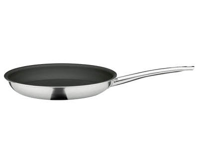 Gefertigt aus einem hochwertigen 5-Lagen-Mehrschichtmaterial, kombiniert diese Pfanne eine äußere Schicht aus induktionstauglichem Edelstahl 18/0 mit einer inneren Edelstahllegierung 18/10 und einem dreifachen Aluminiumkern. Diese Materialstruktur ermöglicht eine optimale Wärmeverteilung bis an den Rand – ideal für schnelles Anbraten und gleichmäßiges Garen. Die innovative Edelstahloberfläche bietet mit etwas Speiseöl einen natürlichen Antihafteffekt – ganz ohne Beschichtung. Sie ist extrem kratzfest, langlebig und auch für die Verwendung von Metallwendern geeignet.