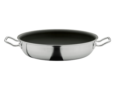 Das 5-Lagen-Mehrschichtmaterial kombiniert eine Außenschicht aus induktionsfähigem Edelstahl 18/0 mit einer inneren Schicht aus Edelstahl 18/10 und einem leistungsstarken dreifachen Aluminiumkern. Das sorgt für eine schnelle, gleichmäßige Wärmeverteilung bis an den Rand. Die innovative Edelstahloberfläche entwickelt mit etwas Speiseöl einen natürlichen Antihafteffekt – ganz ohne klassische Beschichtung. Sie ist extrem robust, kratzfest und für Metallwender geeignet.