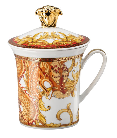 Der Asian Dream 2012 Becher mit Deckel 0,35 l von Versace ist ein exquisites Geschirr-Accessoire, das durch seine beeindruckenden asiatischen Motive in Gold und Blau besticht. Das luxuriöse Design verleiht jedem Tisch eine besondere Note. Der Becher eignet sich perfekt für heiße Getränke wie Kaffee oder Tee und bietet Platz für 0,35 Liter.
