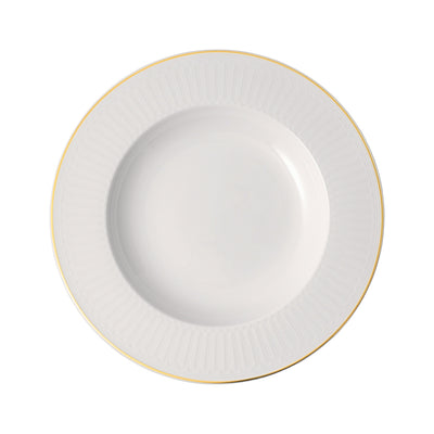 Der breite, tiefe Teller der Serie Château Septfontaines mit dem goldenen Rand bietet genug Platz, um Ihren Gästen leckere Suppen zu servieren..