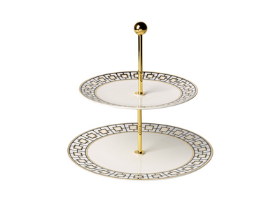 Die zweistöckige Etagere präsentiert kleines Gebäck oder Sandwiches und wird Sie lange mit seinem brillanten Dekor erfreuen.