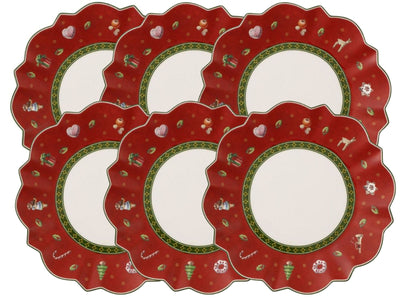 Das Villeroy & Boch Toy's Delight Brotteller Set in Rot umfasst sechs festlich gestaltete Brotteller mit einem Durchmesser von 17 cm. Diese Teller sind Teil der beliebten Weihnachtskollektion "Toy's Delight" und zeichnen sich durch ihre nostalgischen Motive und die festliche rote Farbe aus. Die liebevoll gestalteten Illustrationen von Spielzeug und weihnachtlichen Ornamenten bringen den Charme traditioneller Weihnachtsfeste direkt auf den Tisch und schaffen eine festliche Atmosphäre.