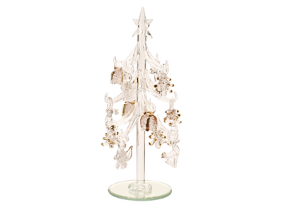 Der goldene Glasbaum mit Ornamenten macht sich super gut auf Ihrem Weihnachtstisch oder aber auch unter dem Baum als Geschenk für Ihre Liebsten.